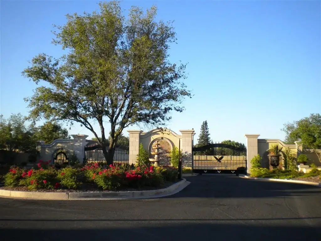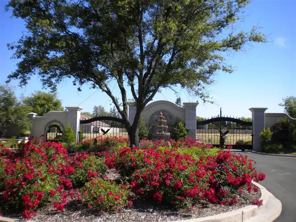 Imported Live Oak Tree, Colorful Landscaping, 12 Foot Tall Gates, Massive Entrance With Huge Fountain